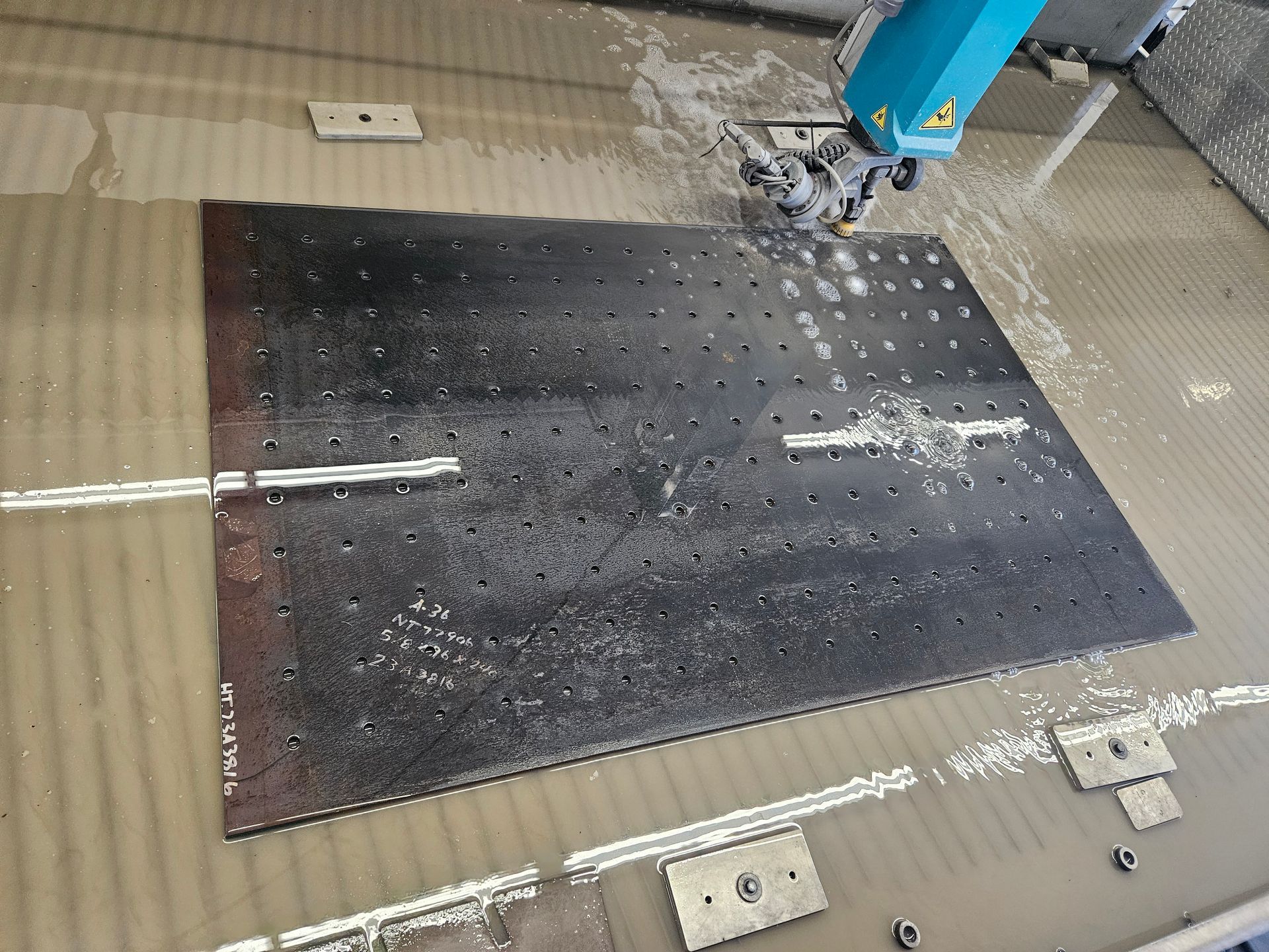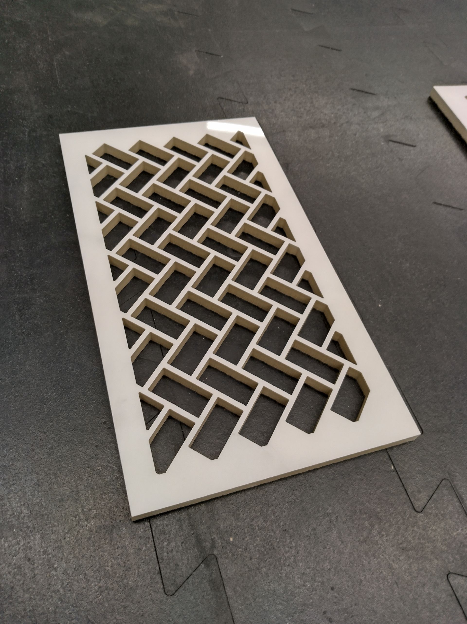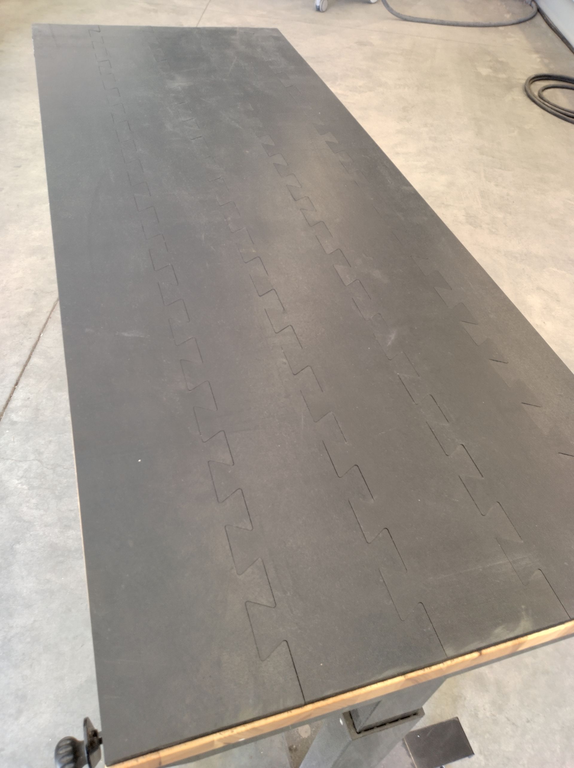The jig tabletop being cut is 5/8" material. The 5/8" holes are every 4 inches and the overall size is 75" by 48".